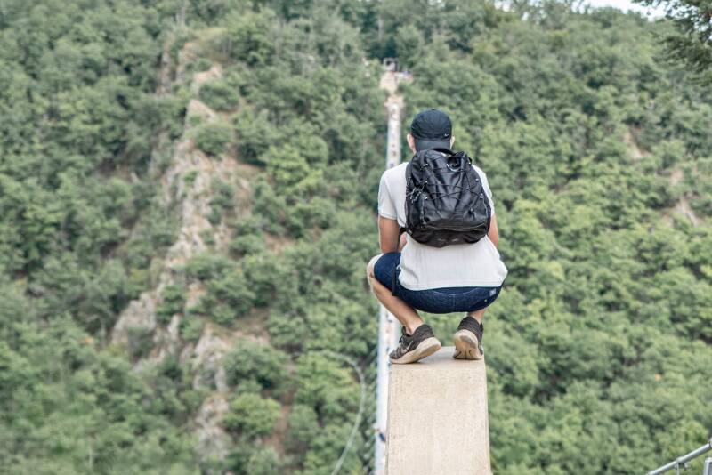 An der Hängeseilbrücke Geierlay war es aber auch nett. Und wie immer mussten wir feststellen, dass 30 km im Ruhrgebiet gefühlt 150 km auf kurvigen Landstraßen sind.