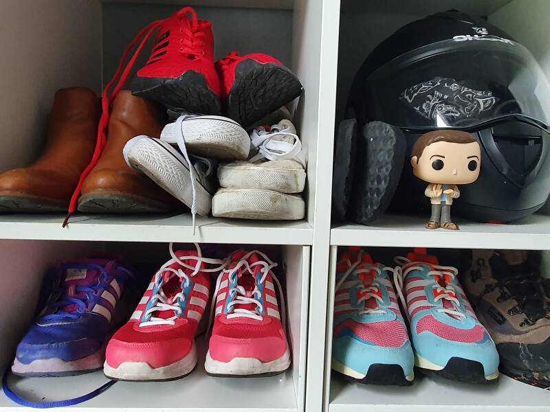 Zurück zum nicht existenten begehbaren Kleiderschrank, der auch eher unpraktisch ist, wenn man überwiegend Sneaker trägt. Denn in diesem Fall sollte für eine ausreichende Belüftung gesorgt sein. Da ist ein Regal im Flur doch zielführender.