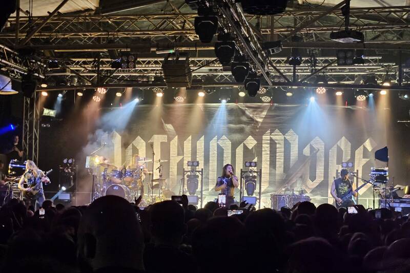 Dieser hier ist  schmaler, hat viel längere Haare, die in der kurzen Zeit nicht hätten wachsen können, hat eine bessere Stimme und vor allem: Er hat sein T-Shirt noch an. Machste nix, also genießen wir den geilen Sound inklusive Stage Diving einiger Mutige. Nur schade, dass sie nicht Go to War spielen.